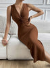 Sexy V-neck Kinked Slit Sleeveless Dress
