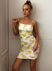Sleeveless Suspender Lemon Yellow Printed Pleated Dress