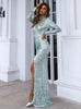 V-neck Temperament Bag Hip Sexy Sequins Split Dress