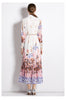 Bohemian Lapel Waist-exposed Hollow Print Long Dress