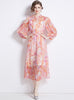 Long Sleeve Round Neck Slim Printed Chiffon Dress