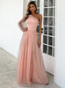 Pink Tulle One Shoulder Long Sleeve Party Dress