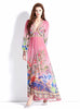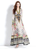 Retro Deep V-neck Lantern Sleeve Printed Dress