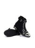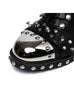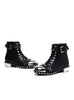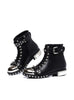 Black Flats Genuine Leather Studded Lace Up Ankle Boots