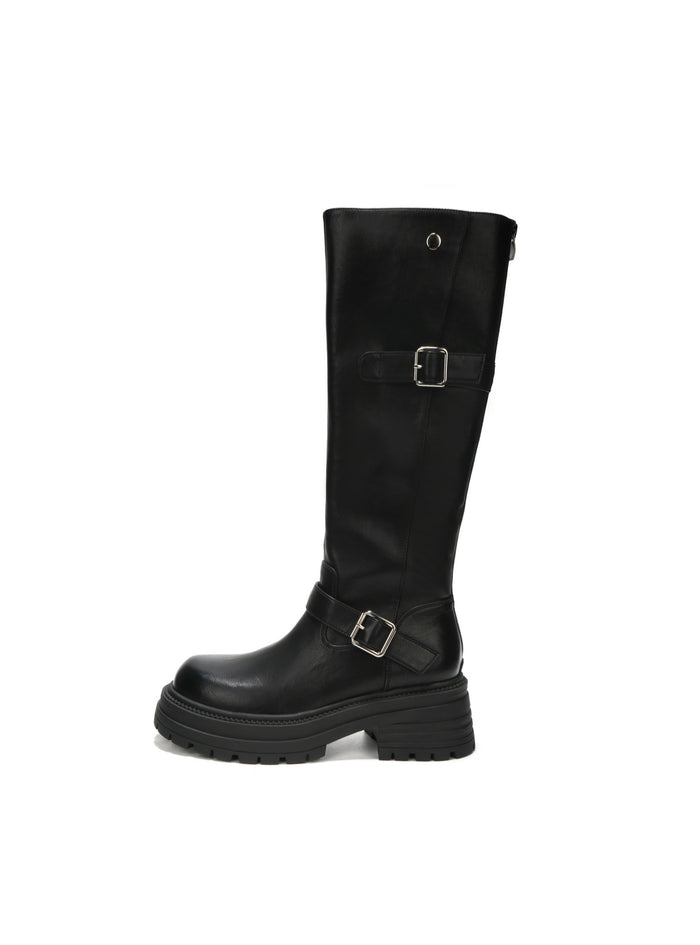 Riveting in design, these knee-high brown leather boots are a stylish combination of rugged functionality and sleek elegance. The buckle detailing around the ankle and calf adds a unique touch, elevating the overall look while ensuring a secure fit. The chunky sole offers durability and comfort, making these boots ideal for outdoor adventures or long days on your feet. The leather material ensures longevity, and the rich brown color adds a sophisticated element that can complement a wide range of outfits. Whether you're pairing these boots with casual jeans or a more polished ensemble, they provide both style and practicality. Perfect for colder months, these boots will keep you both fashionable and comfortable.
