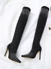 Pointed Rhinestone Stiletto Heel Knee-length Boot