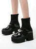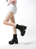 Women's Pearl Chain Thick Heel Thick Back Zipper Booties