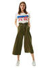 Khaki Wide Leg Pants Casual Ruffles Loose Bottom