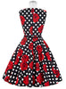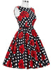 Black Wave Point Red Flower Tea Length Dress
