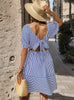 Bubble Sleeve Lapel Short Sleeve Striped Dress