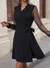 Lapel Lace Stitching Suit Neck Dress