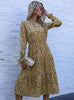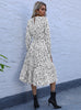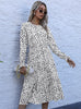 Leopard Print Elastic Waist Round Neck Long Sleeve Dress