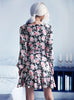 Long Sleeve Flower Print Flounce Dress