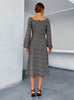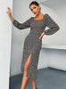 Long Sleeve Square Collar Split Floral Dress