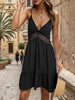 Lotus Leaf V-neck Lace Stitching Sling Dress