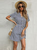 Striped Lapel Short Sleeve Lace-up Shirt Dress