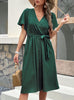 V-neck Lace-up Short Sleeves Dress