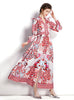 V-neck Retro Palace Style Long Sleeve Printed Dress