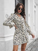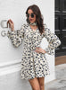 Drawstring V-neck Flared Sleeve Floral Printed Chiffon Dress
