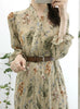 Elegant V-neck Floral Printed Flare Sleeve Dress