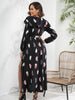 Feather Printed Lotus Leaf Long Sleeve Wrapped Dress