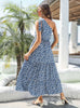 Ruffled Oblique One-shoulder Floral Swing Dress