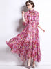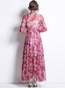 Long Sleeve Chiffon Printed Bow Tie Dress
