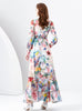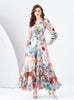 Retro Deep V-neck Lantern Sleeve Printed Sress