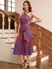 Retro Printed Halter Lace-up Dress