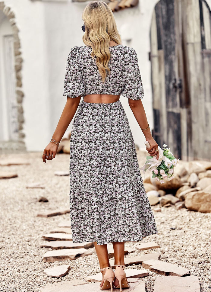 Are you in desperate need of a wardrobe update? Look no further than the Lilacoo Floral Print Cutout Maxi Dress. The dress is crafted from lightweight woven fabric with a fresh white floral print throughout, creating a chic and sophisticated look. The rounded neckline and short sleeves add a touch of elegance to the dress, while the fitted bodice with an open back and two slender tying straps create a flirty and feminine vibe. The dress is easily fastened with a hidden back zipper, completing the look with a touch of convenience. Get ready to satisfy your new desires with this charming dress.