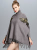 High Necked Turtleneck Bat Sleeve Fringed Knitted Shawl