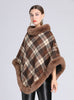 Plaid Plus Imitation Rex Rabbit Fur Collar Shawl Knitting