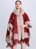 Snowflakes Ppadded Fur Collar Knitted Shawl Cloak