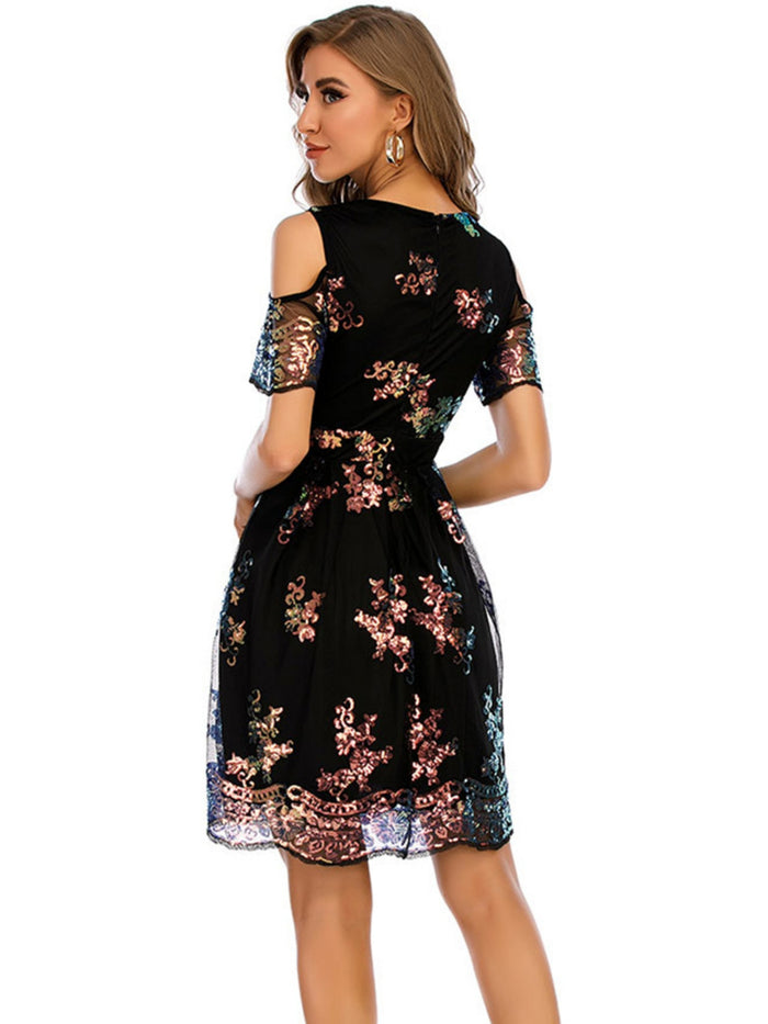 The enchanting dress captivates with its exquisite floral embroidery and delicate velvet trim accents. Flowing ruffles at the edges of the form-fitting sleeves and skirt hemline infuse a sense of liveliness and charm. Ideal for any memorable event, this dress will make you feel utterly bewitched as you adorn it. The convenient zipper ensures effortless wear and removal.