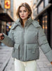 Hooded Stand Collar Short Cotton-padded Down Jacket