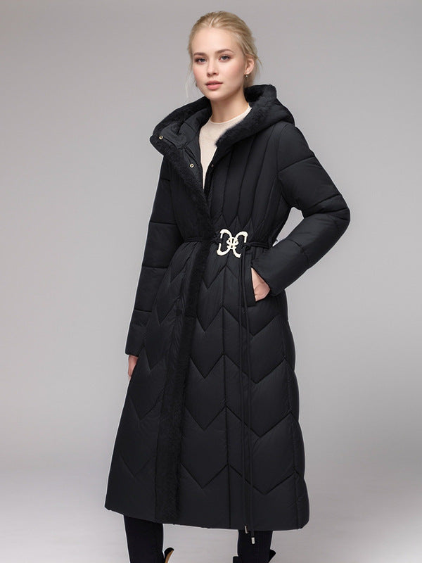 Not only sophisticated but also incredibly cozy, this long, quilted coat is designed to wrap you in warmth and elegance. Its brown tone with a plush faux fur lining along the collar provides a luxurious feel, making it a standout choice for cold-weather occasions. The extended length offers additional warmth, perfect for those who want full coverage from head to knee. This coat’s chevron quilting pattern not only enhances its visual appeal but also maximizes insulation, ensuring you stay snug even on the coldest days. The high-quality, weather-resistant fabric ensures that you remain dry and protected from winter elements, while the comfortable fit allows for layering. This coat is the epitome of winter sophistication, combining timeless design with modern functionality. It’s an ideal choice for those who value both style and comfort, making it a versatile piece for any winter wardrobe.