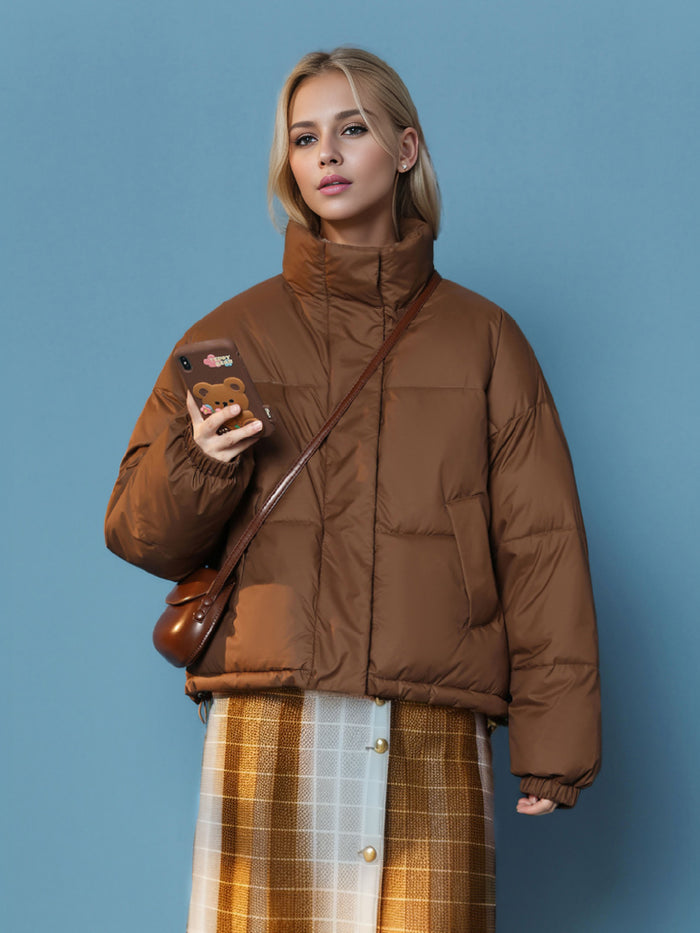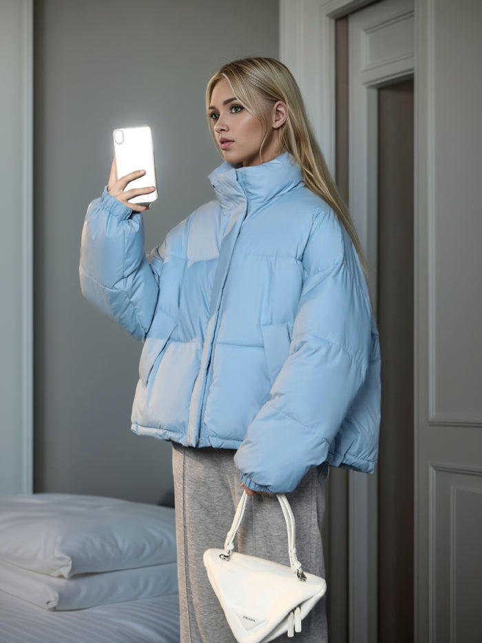 Flattering yet functional, this white puffer coat is crafted with both style and practicality in mind. The oversized silhouette offers a modern, relaxed fit, while the padded construction ensures maximum warmth without feeling bulky. The high collar adds a layer of protection against harsh winds, and the zippered front makes it easy to slip on and off. Ideal for both casual outings and winter adventures, this coat pairs well with anything from jeans to athleisure. Its clean, minimal design combined with its insulating features makes it the perfect addition to your cold-weather wardrobe.