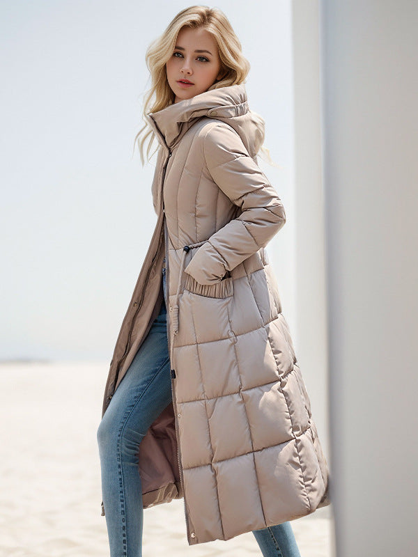 Lavish and graceful, this light taupe puffer coat brings a sophisticated twist to classic outerwear. With a slightly tailored fit, it accentuates your waist while providing ample room for layering, making it versatile and stylish. The light taupe hue is both neutral and chic, perfect for blending into a winter wardrobe or standing out against a snowy background. Its insulated design ensures you’re enveloped in warmth, while the high neck and hood add extra protection against cold breezes. The drawstring waist adds a personalized fit, allowing you to adjust for both style and comfort. Functional pockets are included for added convenience, making it easy to keep your hands warm or store small items on the go. This coat is ideal for those who seek both fashion and function, offering a sleek look that transitions seamlessly from a day in the city to an evening outing.