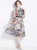 Lace Collar Butterfly Print Long Sleeve Cotton Dress
