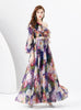 One Shoulder Chiffon Long Sleeve Print Summer Dress