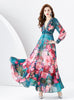 Retro Deep V-neck Lantern Sleeve Printed Dress