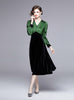 Retro Long-sleeved Printed V-neck Beaded Velvet Dress