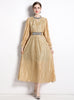 Round Neck Lantern Sleeve Beaded Pleated Dress