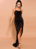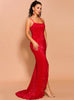 Sexy Red Sequins Spaghetti Straps Party Dress With Split