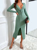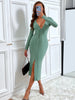 Sexy Slit Slim V-neck Long Sleeve Dress