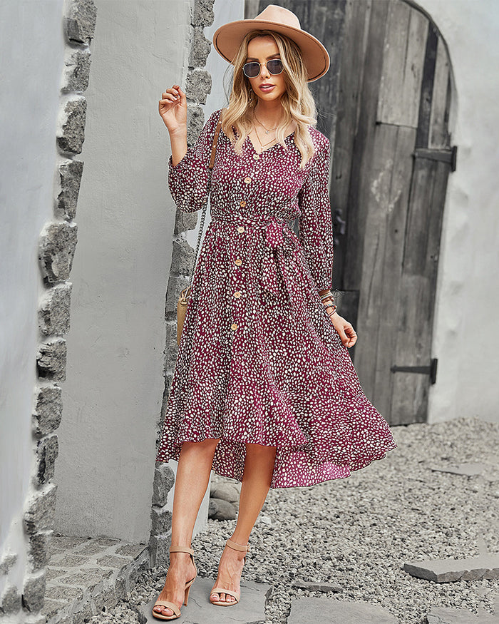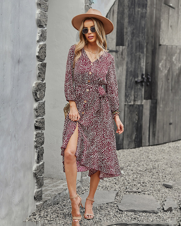 Keep the Lilacoo Long Sleeve Maxi Dress like a promise! Woven chiffon jacquard, with a burnout floral pattern throughout, shapes a princess-seamed a line bodice, framed by long semi-sheer sleeves with buttoning cuffs. A high wrapping waist secures with a set of ties above a flowy maxi skirt.