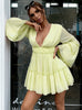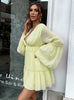 Women V-neck Trumpet Sleeves Chiffon Dress