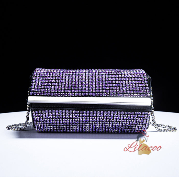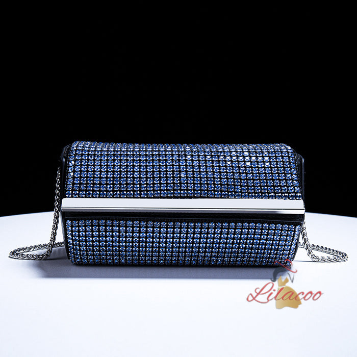 One glance at this stunning handbag, and you will be captivated by its undeniable charm and elegance. Encrusted with shimmering rhinestones, this handbag is a perfect blend of luxury and style, making it an ideal accessory for any glamorous event. The sleek, black base enhances the sparkle of the rhinestones, creating a mesmerizing effect that will draw compliments wherever you go. The handbag features a sophisticated silver bar accent, adding a touch of modernity to its classic design. The silver chain strap offers versatility, allowing you to wear it as a shoulder bag or crossbody, providing both style and convenience. Inside, you'll find ample space to store your essentials, making this handbag as practical as it is beautiful. Elevate your evening look with this exquisite piece that embodies both sophistication and functionality.