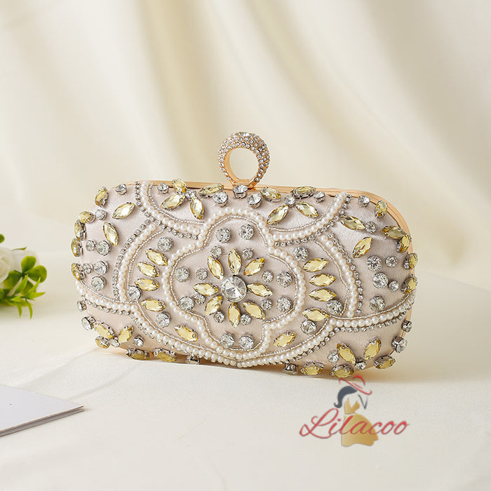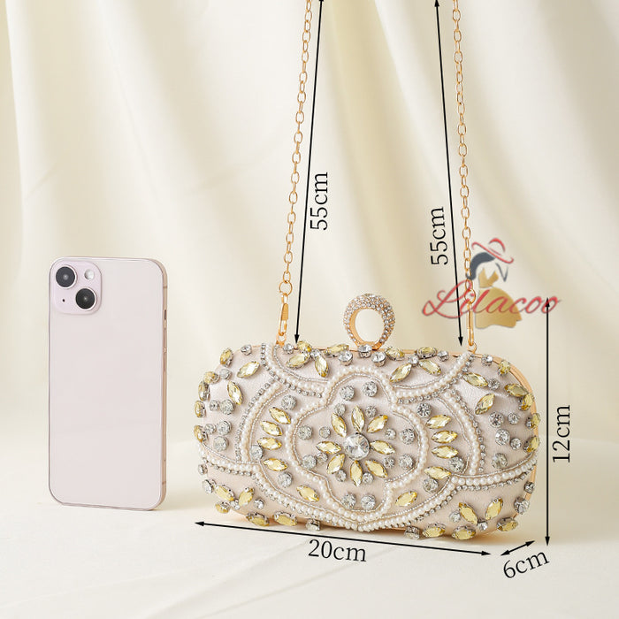 Holding a perfect blend of timeless elegance and modern sophistication, this dazzling clutch is a must-have accessory. The exterior is beautifully adorned with intricate beadwork and sparkling crystals in a delicate floral pattern, making it a true statement piece. The combination of yellow and clear crystals with pearls creates a harmonious and luxurious appearance that catches the light from every angle. The secure clasp closure, designed with a crystal-encrusted ring, ensures your belongings are kept safe while adding an extra touch of glamour. Inside, the clutch offers enough space to carry your essentials, making it both stylish and practical. Perfect for weddings, galas, and upscale parties, this handbag will elevate your ensemble and make you the center of attention.