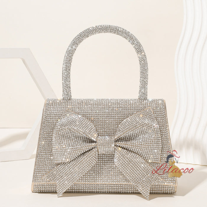 Hitching a ride on the latest fashion trends, this exquisite handbag is designed to dazzle. The shimmering crystal-studded exterior catches the light from every angle, creating a captivating sparkle. The large, elegant bow on the front adds a touch of classic charm and sophistication. The crystal-encrusted handle provides a comfortable and secure grip while maintaining the bag's luxurious appeal. The interior is spacious enough to carry all your evening essentials, and the secure clasp closure ensures your belongings are kept safe. Ideal for formal events, weddings, or any occasion where you want to stand out, this handbag will add a touch of glamour to your outfit and make you the center of attention.